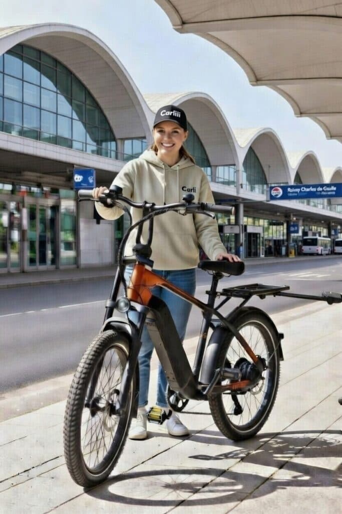 Besoin d’un vélo électrique de location à l’aéroport Paris Charles de Gaulle (Roissy) ? Avec Carlili, bénéficiez d’un service premium et flexible qui transforme votre escale en une véritable aventure. Dès votre arrivée au terminal, votre vélo électrique vous est livré par un de nos carsitters, sans attente ni stress.
